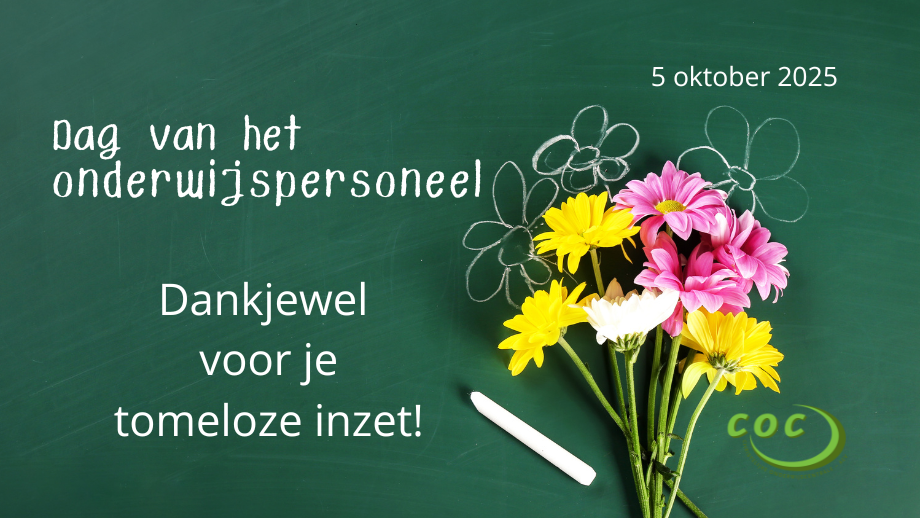 Als mentors en vormgevers van de samenleving hebben ze de kracht om levens te veranderen en dragen ze bij aan positieve veranderingen en groei. Met de uitdagende omstandigheden waarin ze werken, verdienen alle personeelsleden onze oprechte dankbaarheid, want ze inspireren niet alleen huidige, maar ook toekomstige generaties om het onderwijs te blijven verbeteren. Ondanks alles hoopt COC dat je toch een mooie ‘Dag van het onderwijs’ had. Duizendmaal dank om je dag na dag in te zetten voor je leerlingen, studenten en cursisten.