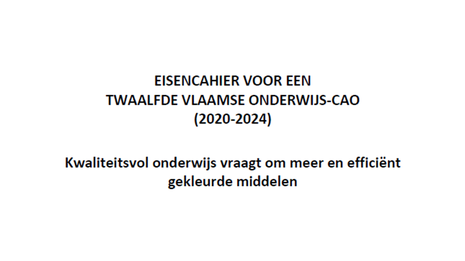 De onderwijsvakbonden vragen geen algemene loonsverhoging, wel meer middelen om echt te kunnen inzetten op het verhogen van de onderwijskwaliteit. Want die kan alleen omhoog als de werkomgeving zich daartoe leent en als er wordt ingezet op het welzijn van de personeelsleden. De Vlaamse Regering moet dan ook 7% van het Bruto Regionaal Product aan onderwijs besteden. Dit betekent onder meer dat er een volwaardige basisomkadering moet komen met bijkomende middelen voor de taken of opdrachten die er de afgelopen jaren bijkwamen. Op die manier kan het personeel zich op zijn kerntaak richten. Middelen voor personeel mogen niet gebruikt worden voor andere doeleinden want zo vergroot de werkdruk en daalt de aantrekkelijkheid van onderwijs als werkplek.