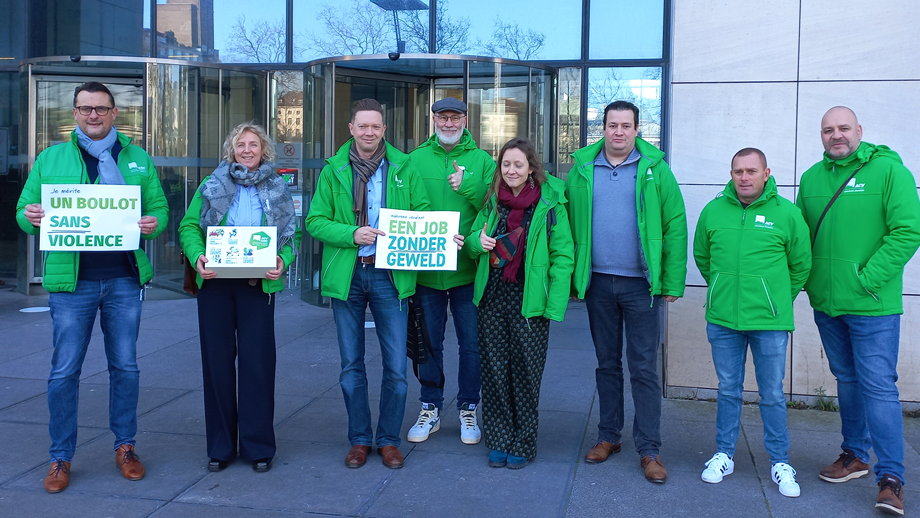 Vanmiddag overhandigde een delegatie van ACV Openbare Diensten de petitie ‘Iedereen verdient een job zonder geweld’ samen met 5 concrete beleidsaanbevelingen aan justitieminister Paul Van Tigchelt. Op 5 maart zullen de adviezen ook aan Annelies Verlinden, minister van Binnenlanse Zaken afgegeven worden. De vakbond hoopt dat de ministers dringend maatregelen neemt om het stijgend aantal agressiegevallen binnen de openbare sector aan te pakken. Ruim 5500 werknemers uit de openbare sector ondertekenden de petitie. De minister erkende alvast dat iedereen inderdaad een job zonder geweld verdient en luisterde aandachtig naar de beleidsadviezen.