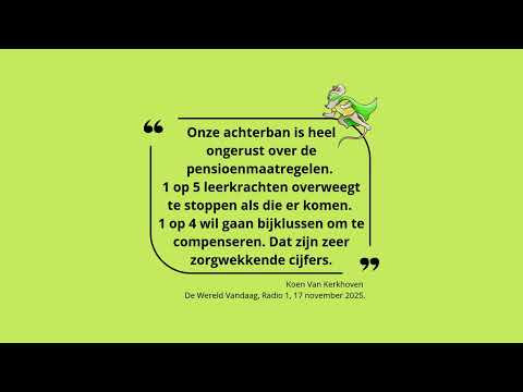 Eén op de vijf leerkrachten overweegt om het onderwijs te verlaten als de federale regering haar huidige plannen om het onderwijspensioen af te bouwen doorzet. Dat blijkt uit een grootschalige ledenbevraging van de christelijke onderwijsvakbonden COC en COV in aanloop naar de nationale stakingsdag op dinsdag 25 november. Meer dan 6.000 personeelsleden uit het onderwijs vulden de bevraging in. Ze vrezen dat de onderwijskwaliteit verder zal dalen, als er geen financiële compensaties komen. Ruim 4 op de 10 respondenten geven bovendien aan een bijverdienste zoals een flexi-job te zoeken als hun job financieel minder aantrekkelijk wordt. Dat willen de onderwijsvakbonden koste wat kost vermijden: “Het lerarentekort is nu al nijpend. We willen niet nog meer personeel uit het onderwijs verliezen. Dat is alleen maar ten koste van de onderwijskwaliteit”, klinkt het.